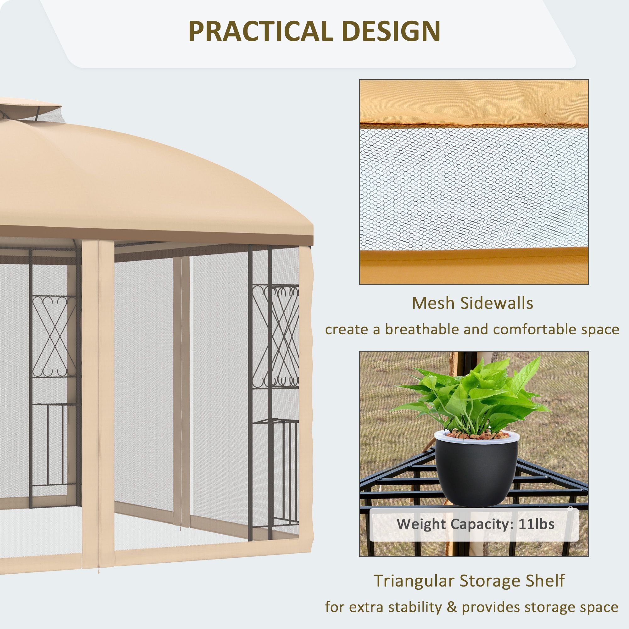 10' x 10' Patio Gazebo with Corner Shelves, Double Roof Outdoor Gazebo Canopy Shelter with Removable Mesh Netting, for Garden, Lawn, Backyard and Deck