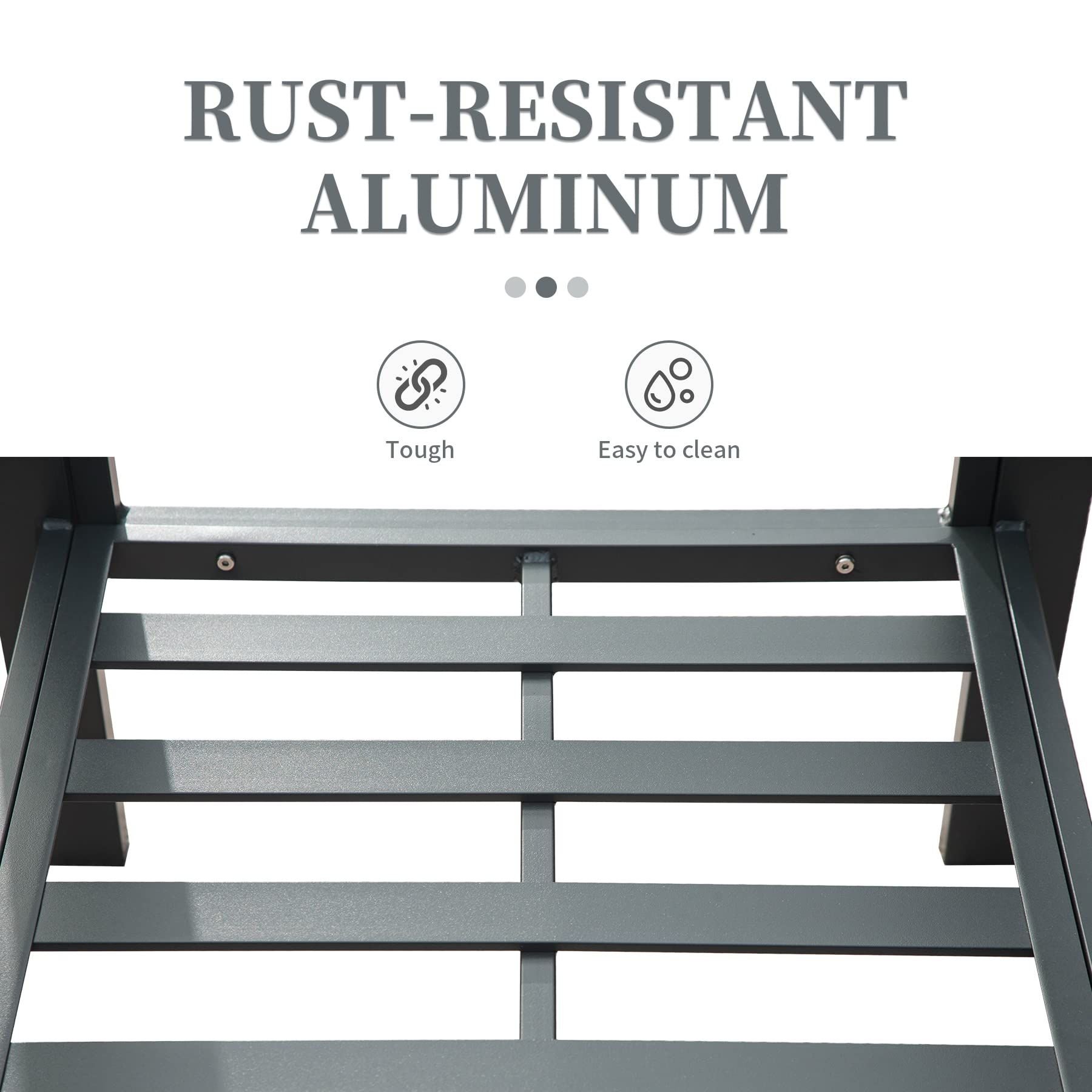 All Aluminum Construction: Constructed with powder-coated aluminum tubing, our patio conversation set ensures rust-resistant durability, providing enduring outdoor enjoyment protected Afrom varying weather conditions.