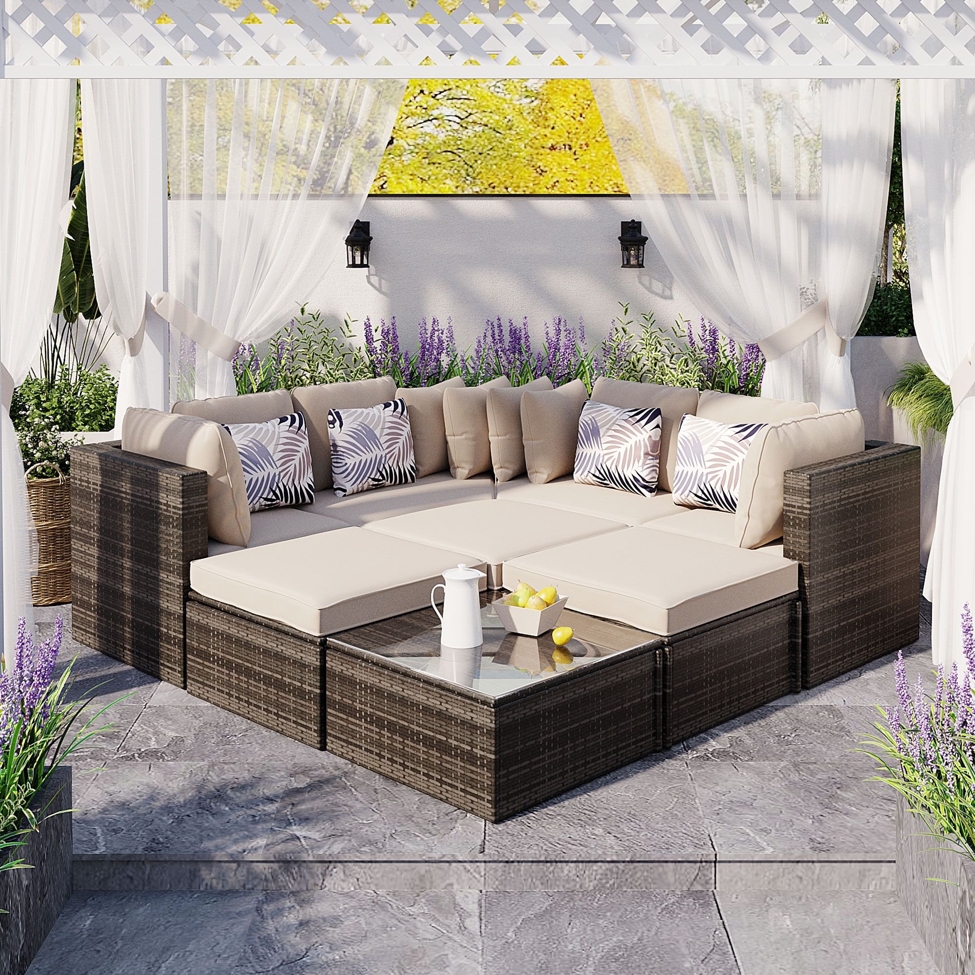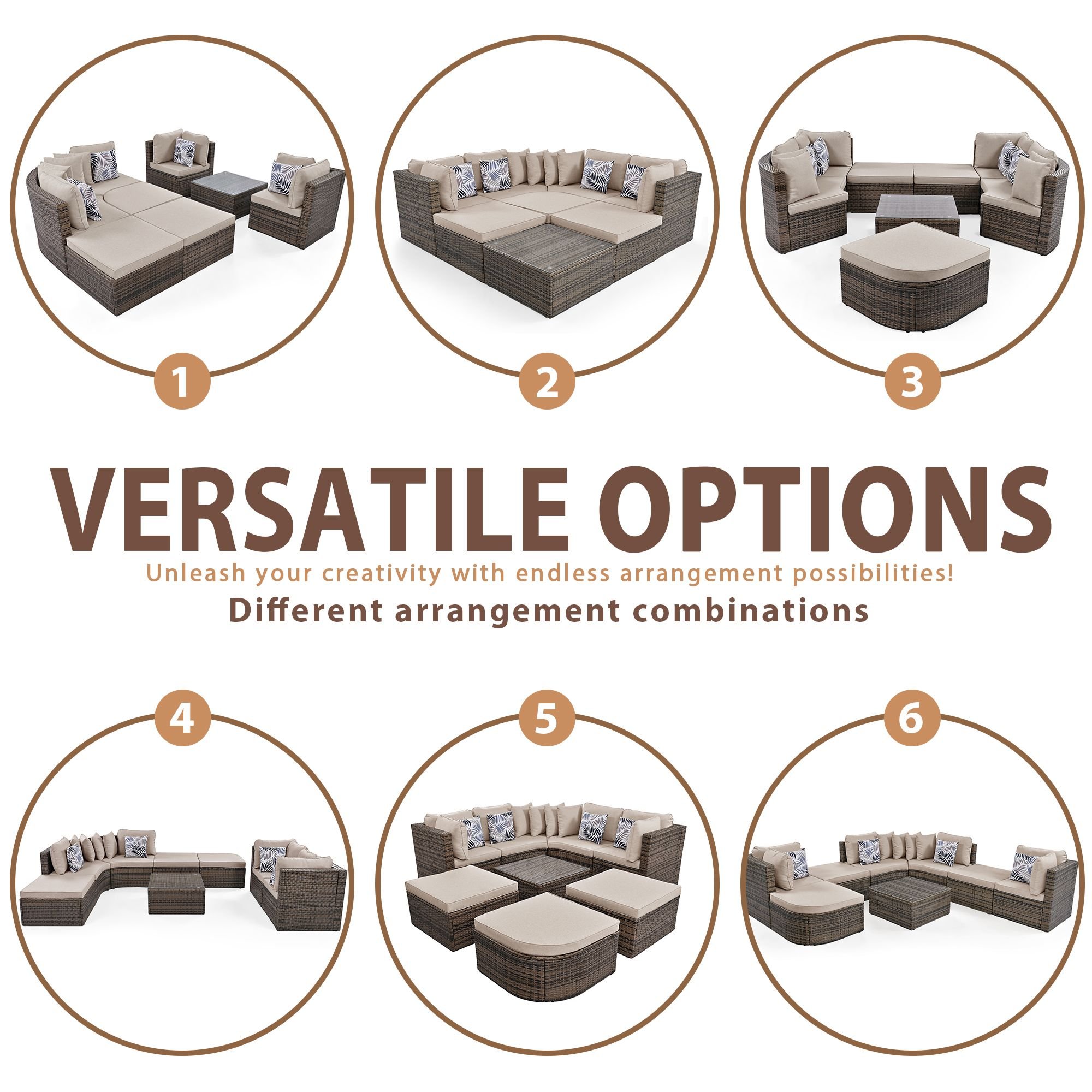 Versatile Options: Unleash your creativity with endless arrangement possibilities! Our sofa set comes with multiple seating options, allowing you to customize your outdoor space to suit any occasion. Whether you prefer intimate conversations or sprawling loungers for soaking up the sun, our set adapts to your needs effortlessly.