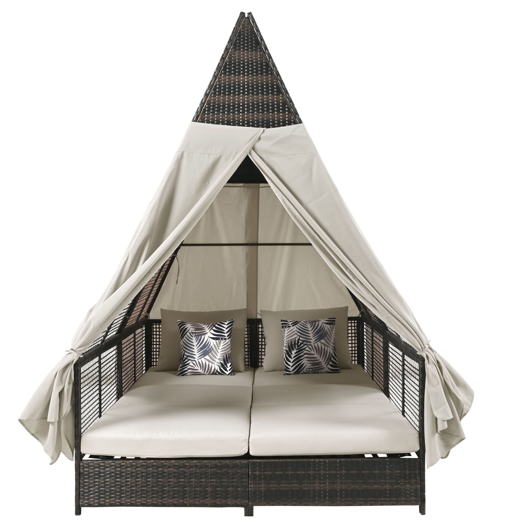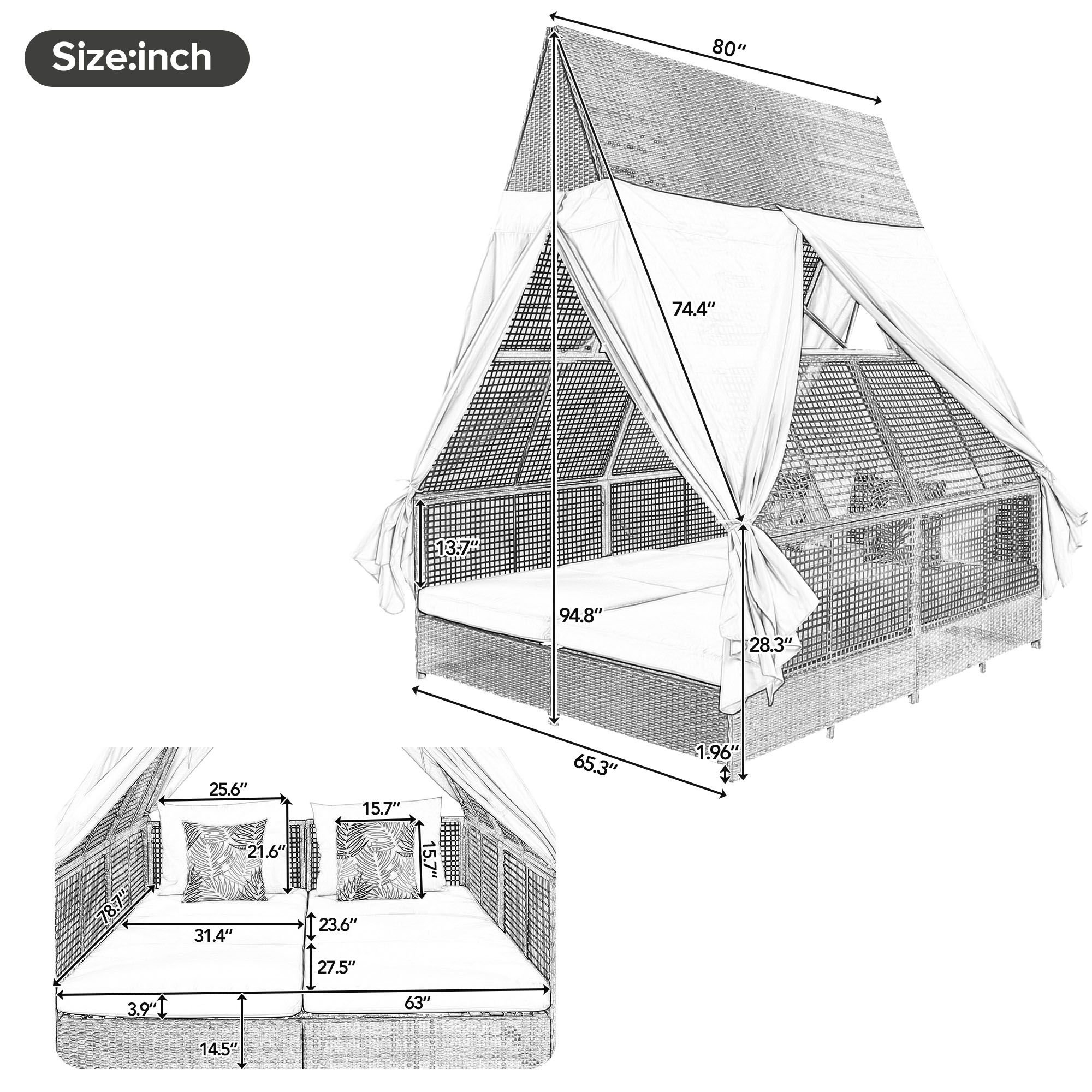 Weather Resistant Material - This patio daybed is made of weather-resistant high-quality PE rattan, elegantly woven on a strong iron frame, with a natural appearance and weather-resistant, holding up well under various weather conditions, maintaining its appeal over time.