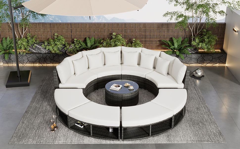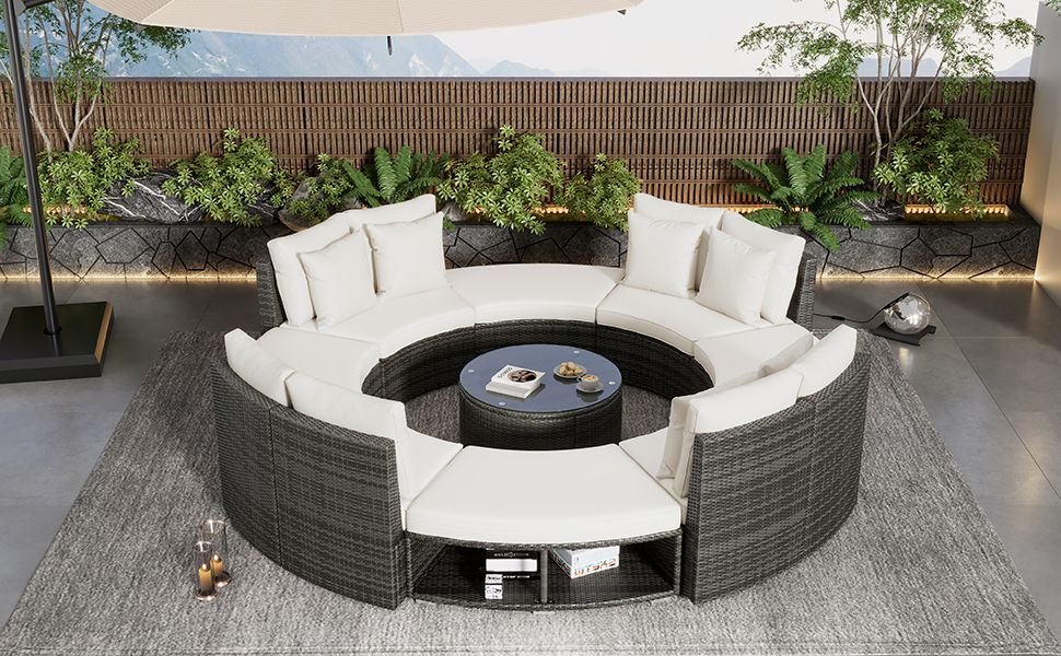 Stylish Design - The Large Circular Sofa Set is something quite unique. Elegant rattan with low saturation cushions for a refined, textured look, Circular patio furniture is the perfect addition to outdoors.