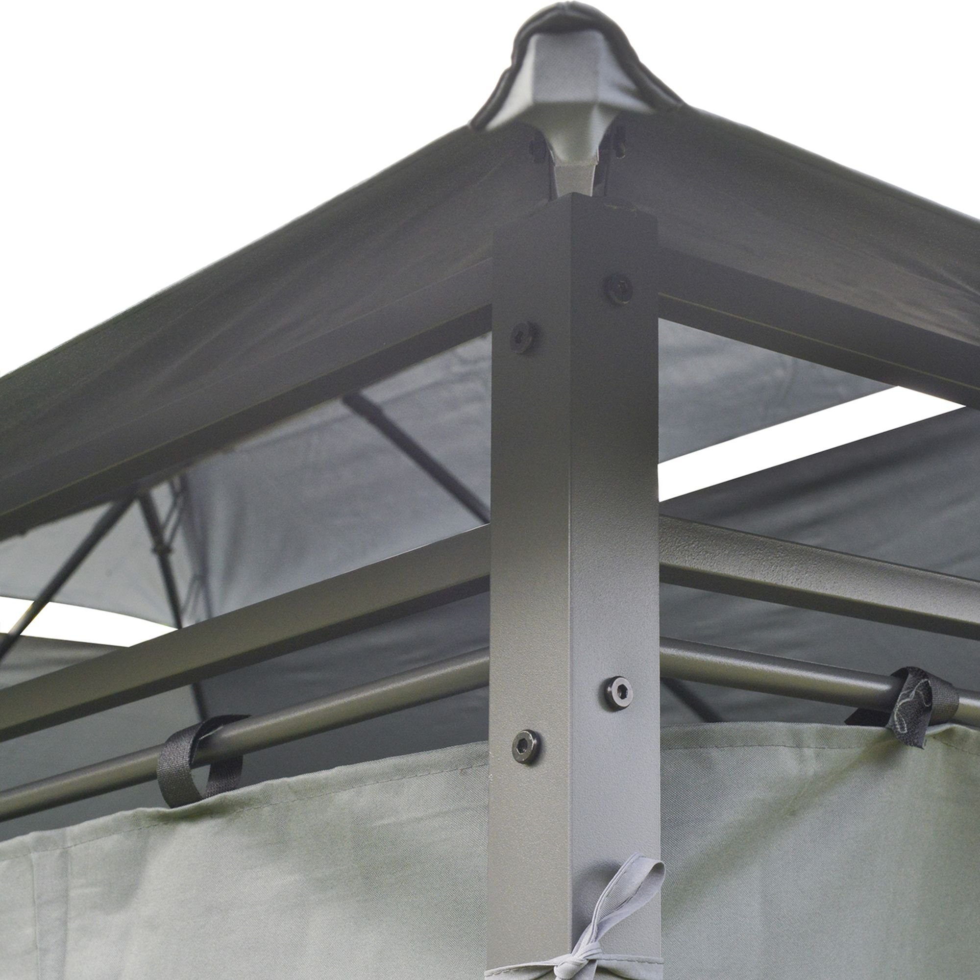 Well-Designed: A double tier roof of the pergola allows for proper airflow while still keeping rain and wind out. The built-in grommets throughout the fabric help ensure proper water drainage, while the hook and loop straps allow you to conveniently fix the curtains onto the frame of your structure.