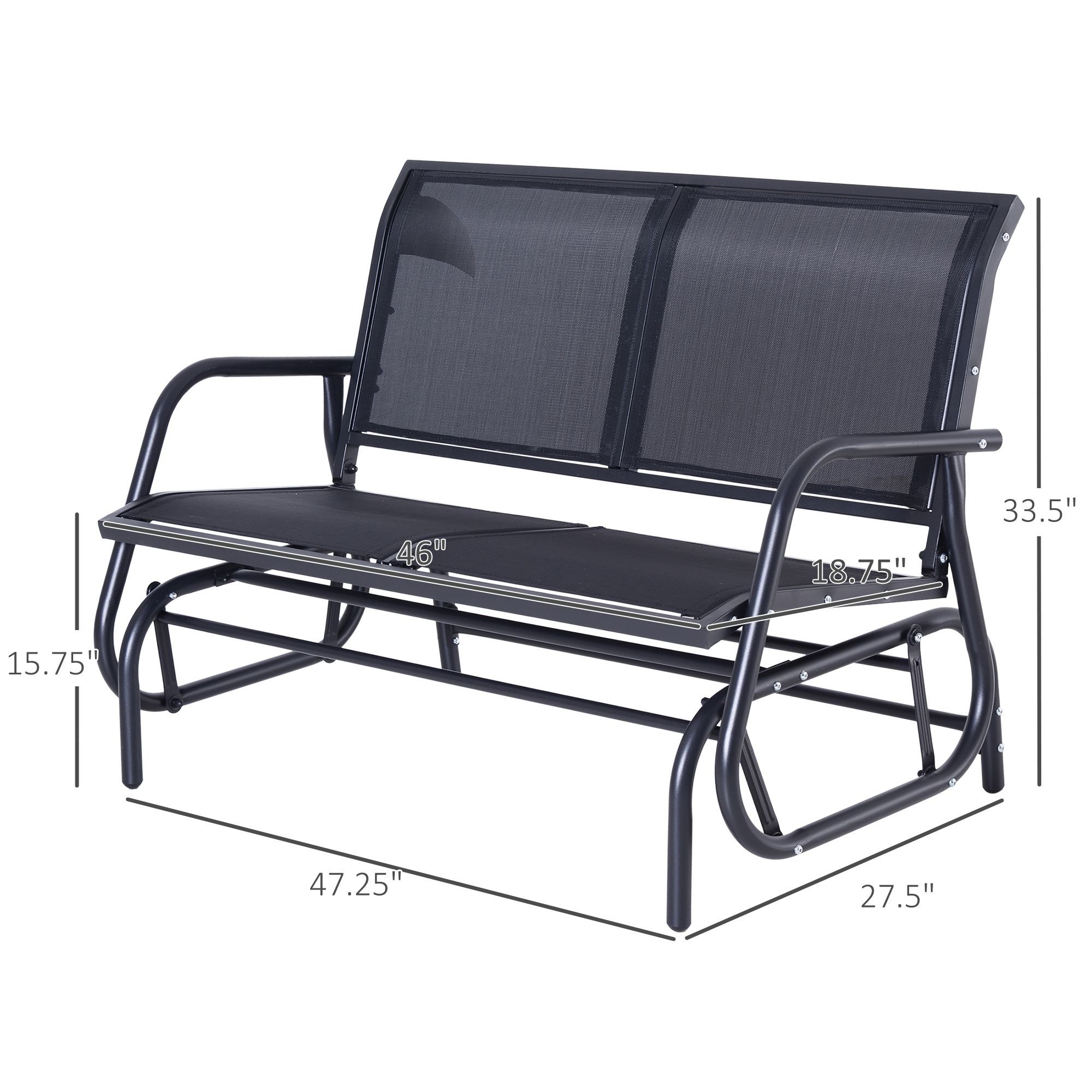 Home > Outsunny 2-Person Outdoor Glider Bench, Patio Double Swing Rocking Chair Loveseat w/ Powder Coated Steel Frame for Backyard Garden Porch, Black