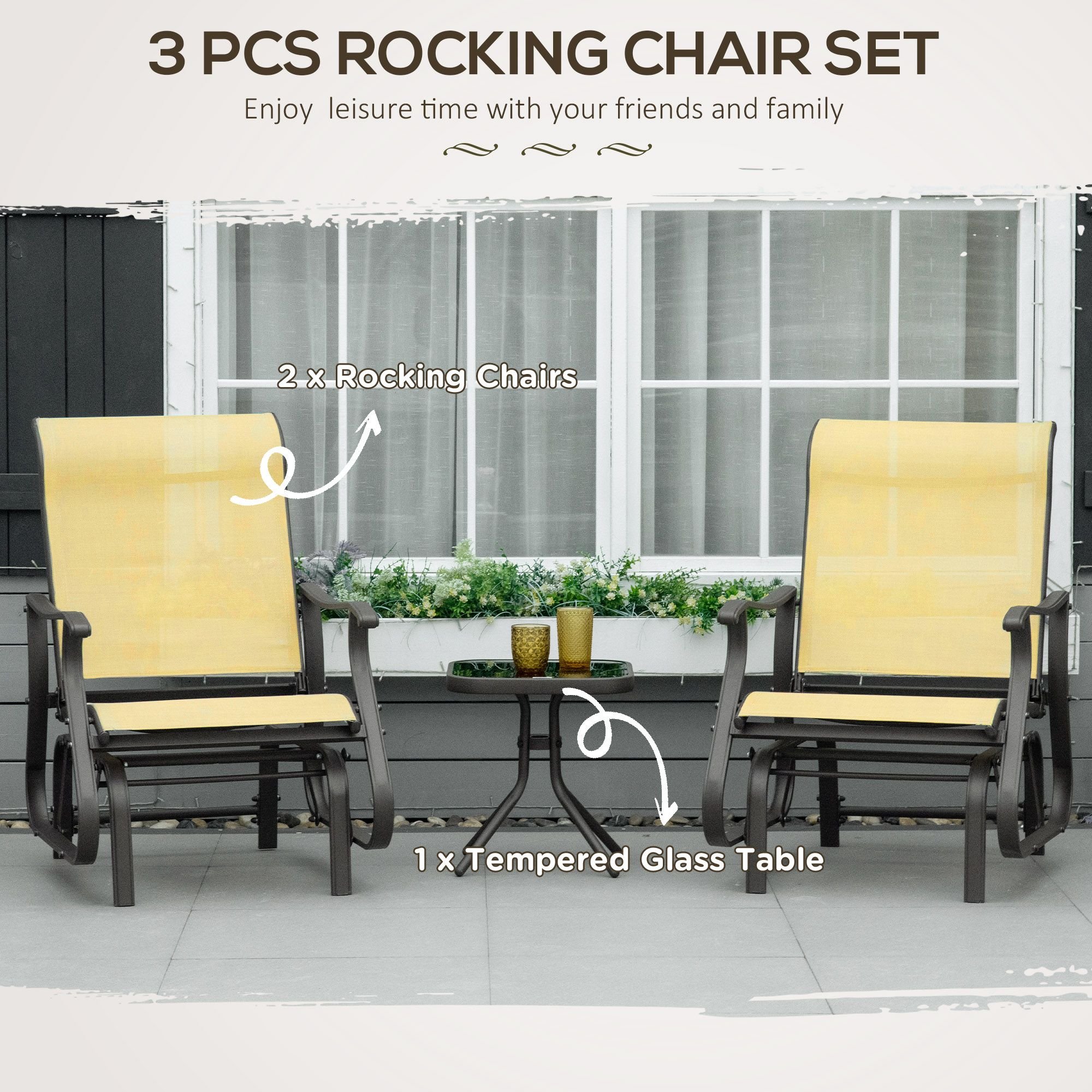 Home > Outsunny 3-Piece Outdoor Gliders Set Bistro Set with Steel Frame, Tempered Glass Top Table for Patio, Garden, Backyard, Lawn, Beige