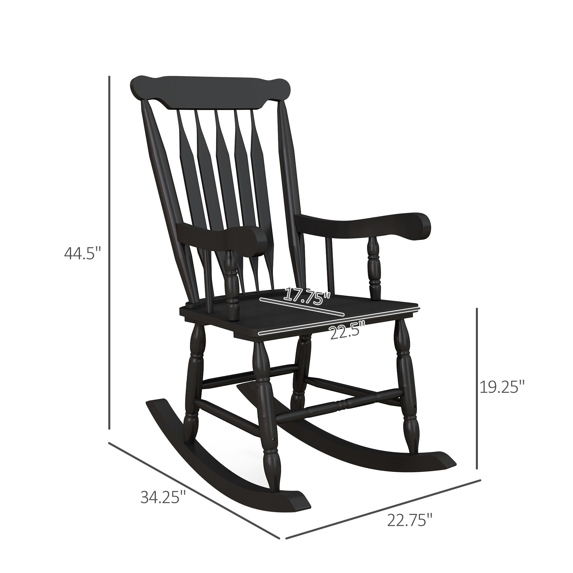Outsunny Outdoor Wood Rocking Chair, 350 lbs. Porch Rocker with High Back for Garden, Patio, Balcony, Black