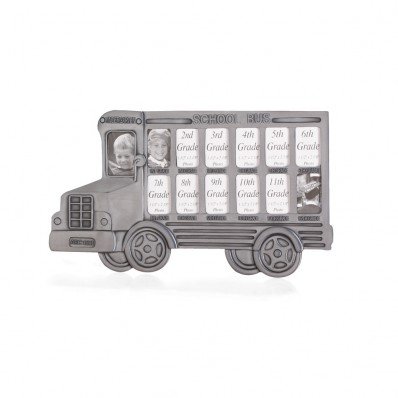 • This pewter-finish school bus has enough windows to frame all of your child's wallet-sized class photos from grades K–12. A charming way to remember all their school days and features an easel back for easy display.